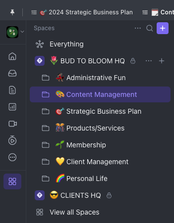 Consider the organization of your ClickUp folders, lists, and workflows. Doing this intentionally made it really easy for me to create a workspace that makes sense for my brain and my business's needs.